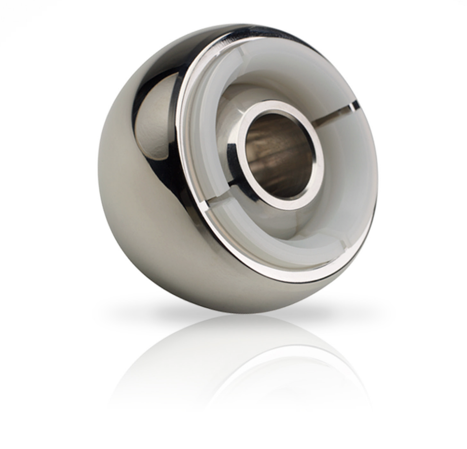The biarticular head features a metallic cup, that is in contact with the acetabulum, and one insert in polyethylene which contains the femoral head inside.